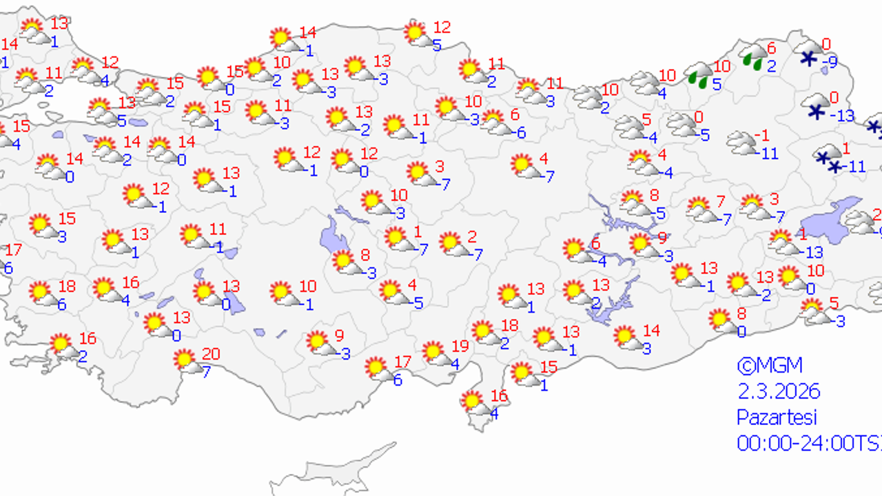 En düşük sıcaklık: -3°C (Perşembe, yer yer hafif kar yağışlı ve donlu)