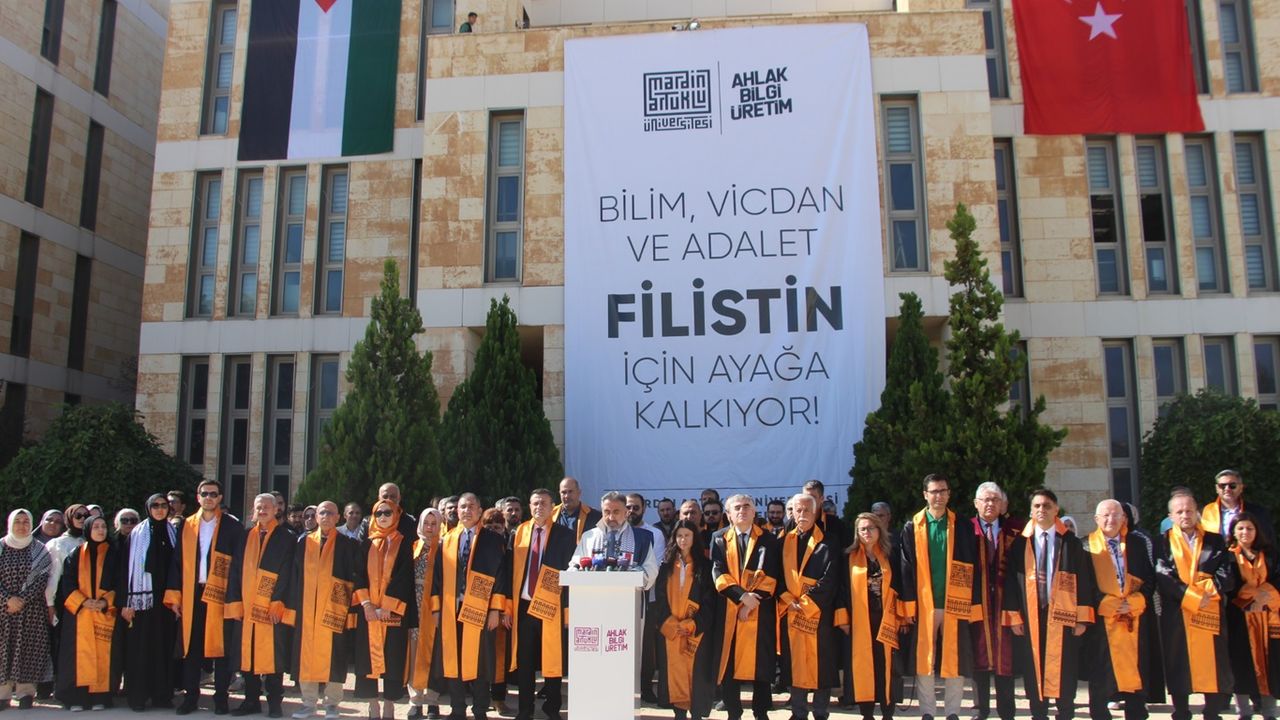 Aksa Tufanı'nın yıl dönümü vesilesiyle bir araya gelen akademisyenler, Gazze'ye destek mesajları vererek, yaşanan soykırımın bir an önce sona ermesi temennisinde bulundu.