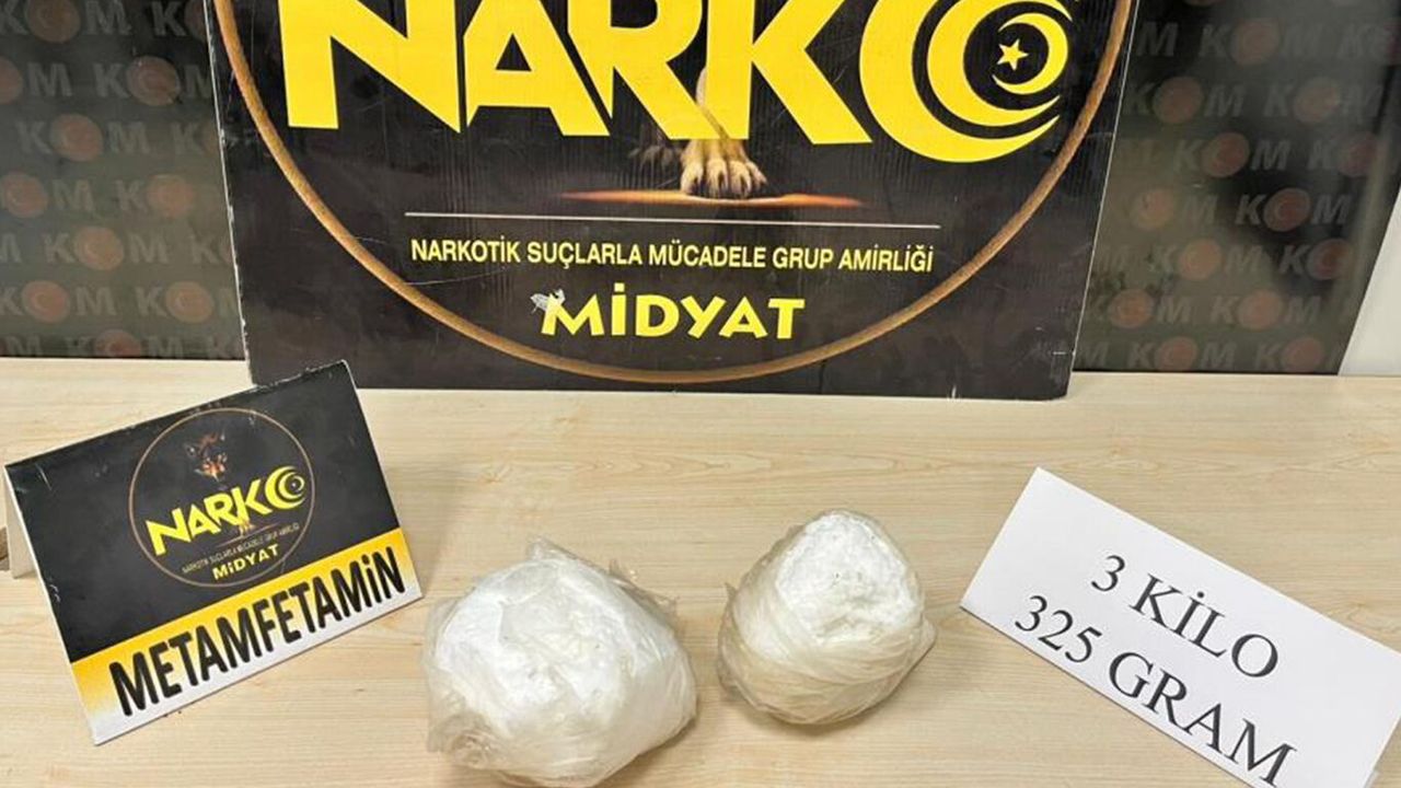 Mardin İl Emniyet Müdürlüğü'nden yapılan açıklamada, Narkotik Suçlarla Mücadele Şube Müdürlüğü Midyat Büro Amirliği ekipleri tarafından yürütülen çalışmalar sonucu, durdurulan şüpheli bir araçta yapılan aramada toplam 3 kilo 325 gram metamfetamin bulundu.
