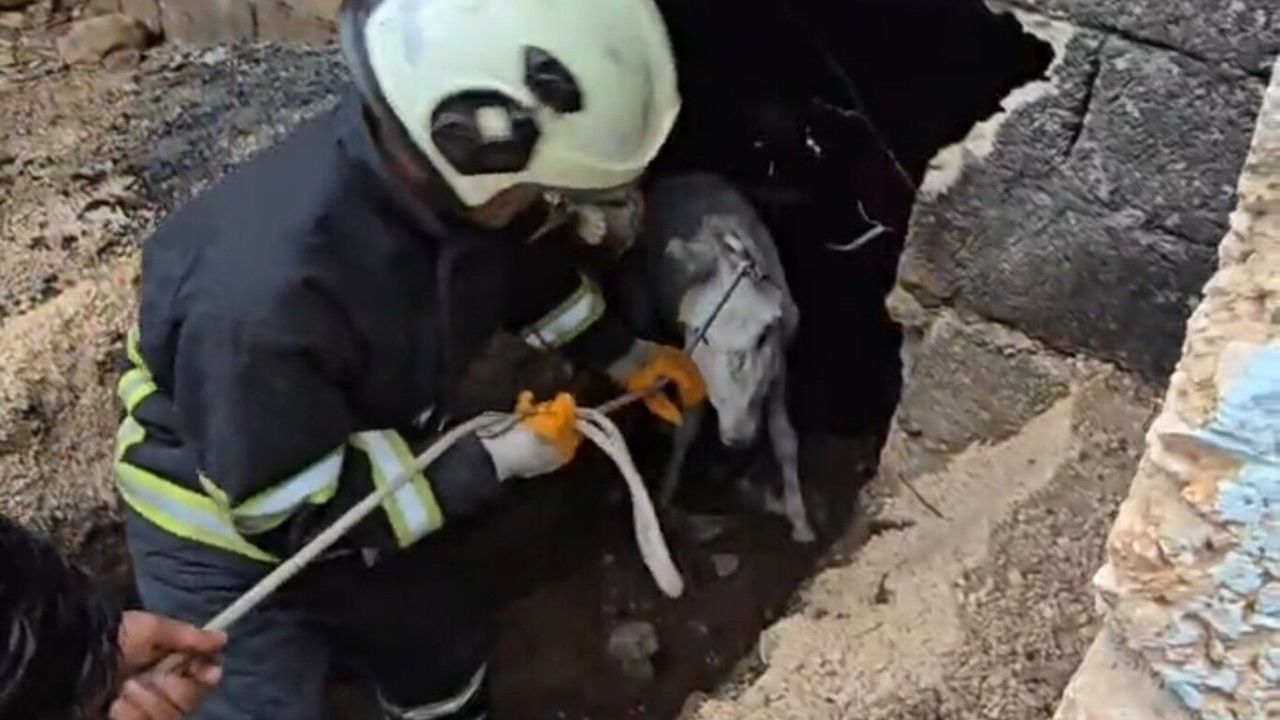 Edinilen bilgilere göre, daha önce çöken ve kullanılmayan eski bir ahırda oluşan çukura bir eşek düştü. Durumu fark eden ev sahipleri, itfaiye ekiplerine haber verdi.