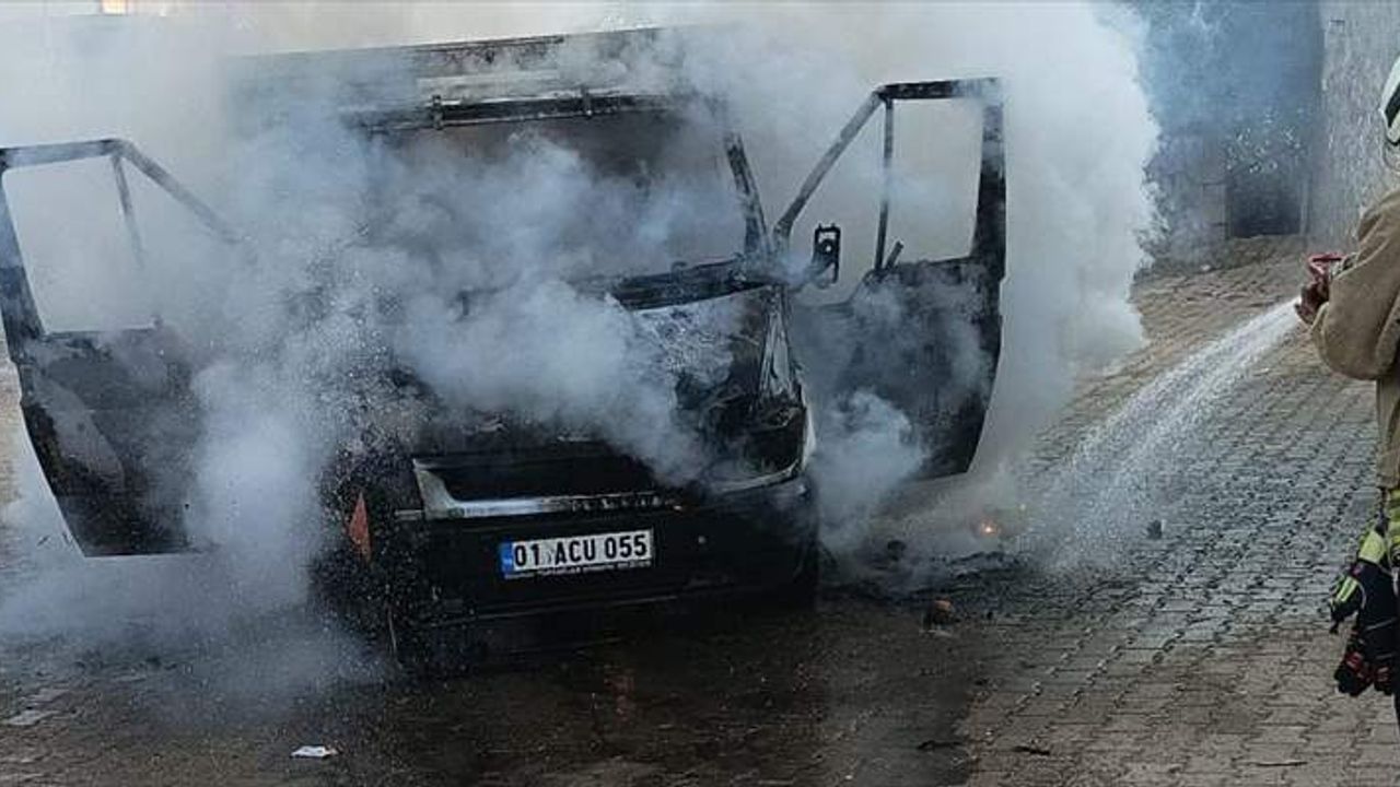 Kırsal Duruca Mahallesi'nde Zeyni İ.'ye ait 01 ACU 055 plakalı kamyonet, hareket ettirildikten kısa süre sonra henüz belirlenemeyen bir nedenle alev aldı.