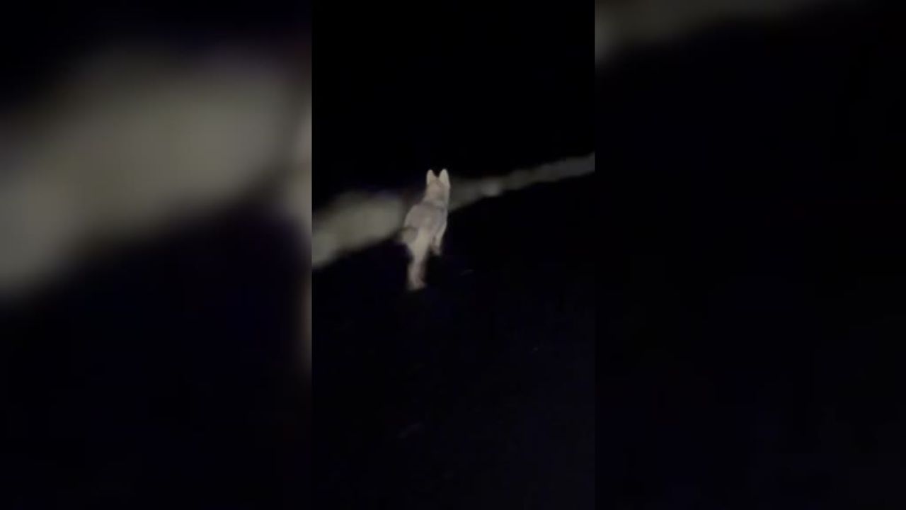 Mardin'in Midyat ilçesinde kara yolunda koşan bir kurt, cep telefonu kamerasıyla görüntülendi.