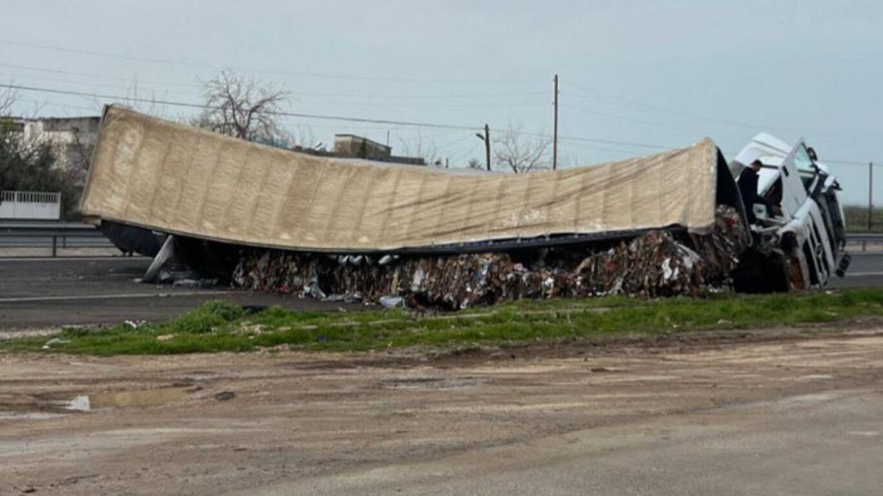 İddialara göre, sürücüsünün direksiyon hakimiyetini kaybettiği karton yüklü tır yol kenarına devrildi.