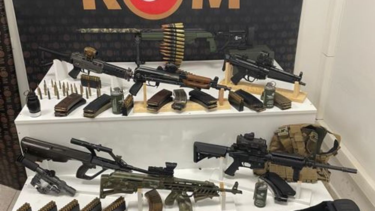 Belirlenen adrese düzenlenen operasyonda 8 uzun namlulu tüfek, 40 şarjör, 6 bin 150 adet fişek, 3 sis bombası ve 1 gaz bombası ele geçirildi.