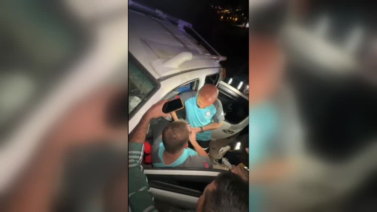 Sürücü, tatbikattan dönen Ulusal Medikal Kurtarma Ekibi (UMKE) tarafından araçta sıkıştığı yerden çıkarıldı.