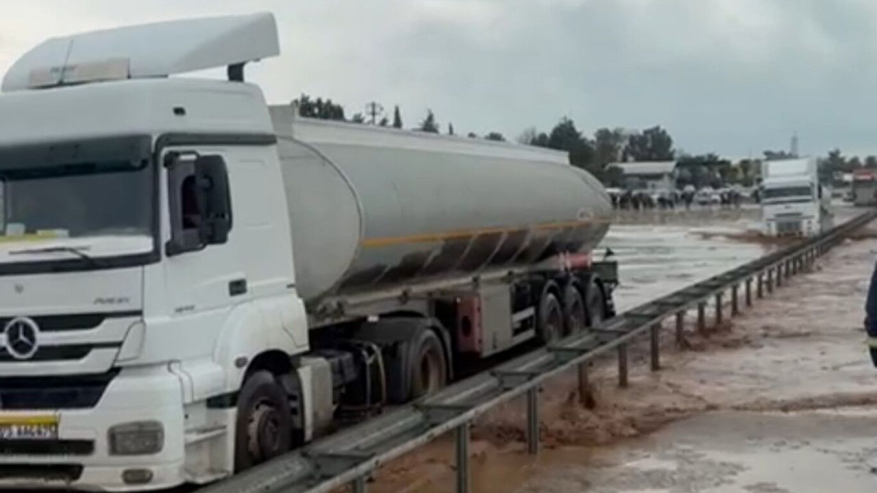 Aralıklı yağış sonrası yolda biriken su nedeniyle sürücüler zor anlar yaşadı.