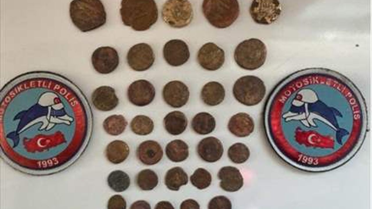 İl Emniyet Müdürlüğünün sosyal medya hesabından yapılan paylaşıma göre, Artuklu ilçesinde durdurulan bir araçta arama yapıldı. Aramada, farklı renk, ebat ve kabartmalara sahip 45 sikke ile hayvan figürlü bir heykel bulundu.