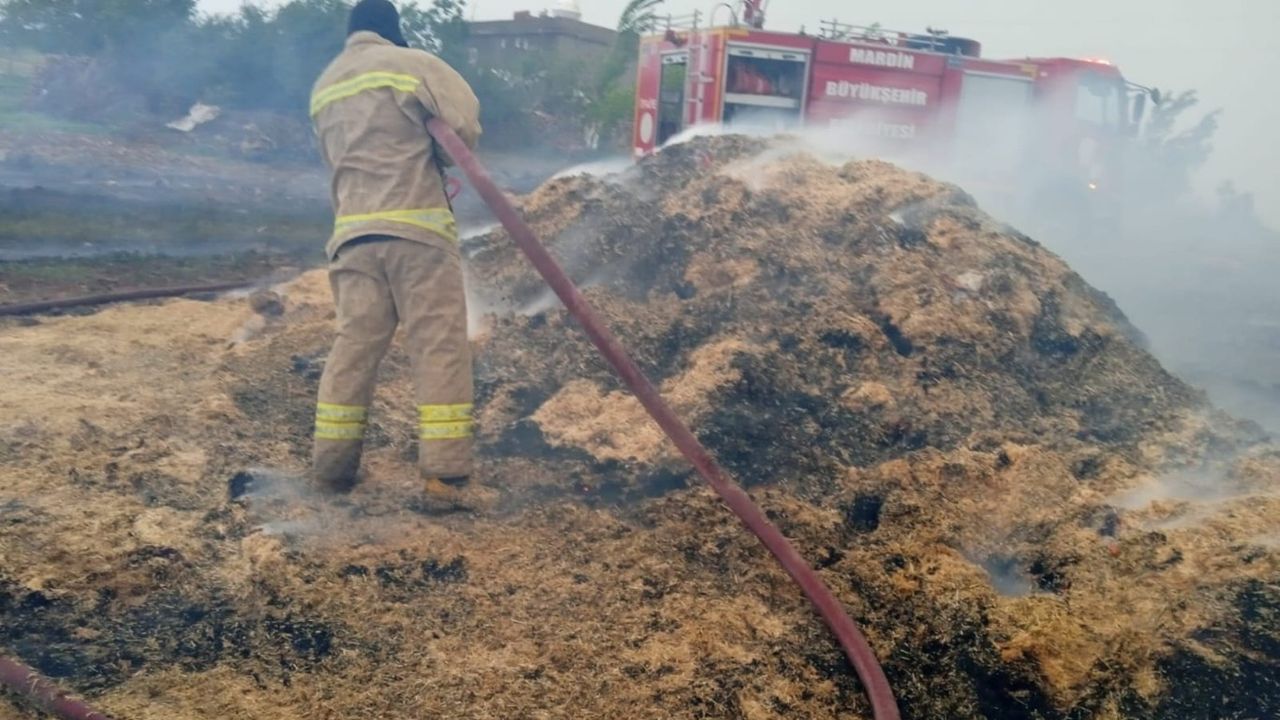 Yangın sonrasında tonlarca saman balyası küle döndü.