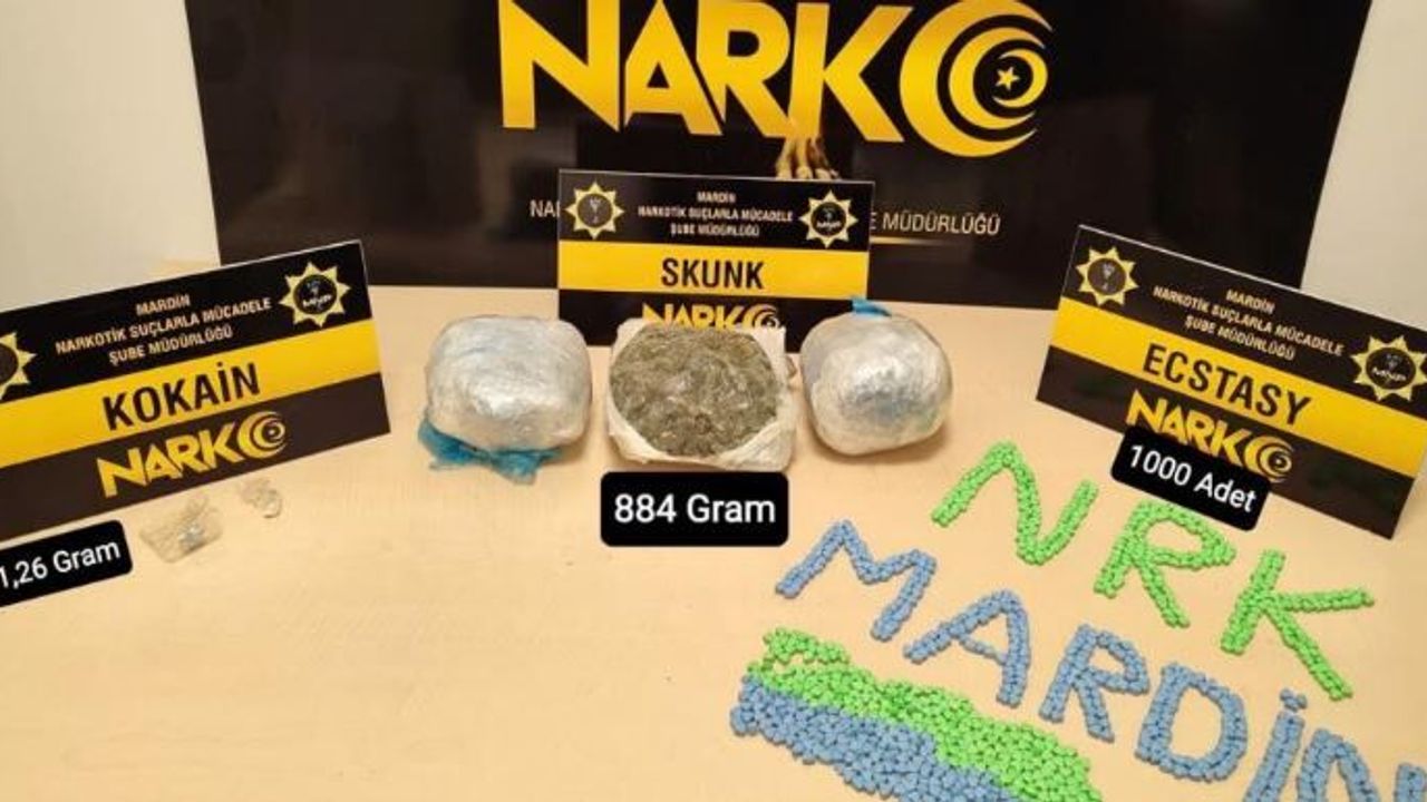 İl Emniyet Müdürlüğü Narkotik Suçlarla Mücadele Şube Müdürlüğü ekipleri, Artuklu ilçesinde durdurulan iki araçta arama yaptı. Yapılan aramalarda 1000 adet ecstasy hap, 884 gram skunk ve 1,26 gram kokain ele geçirildi.