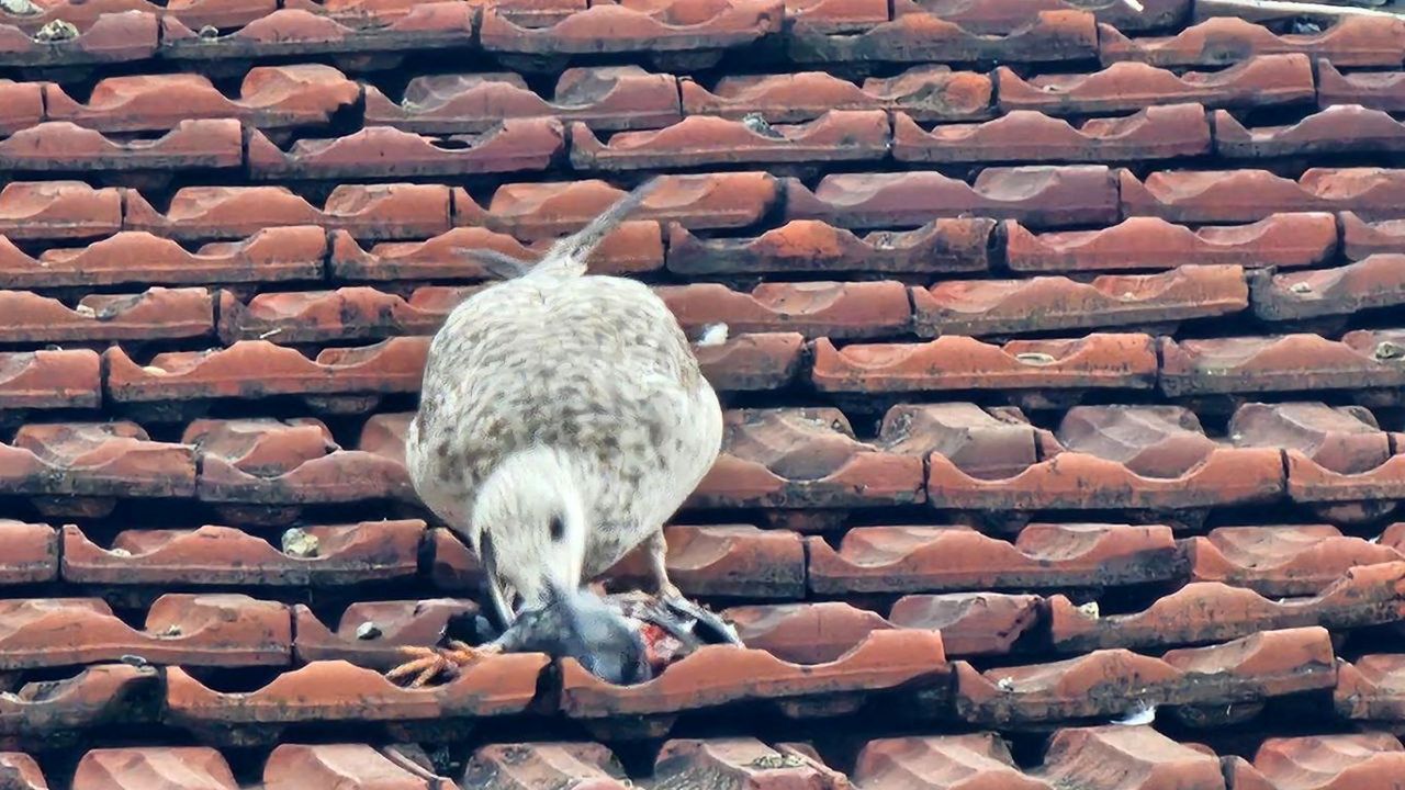 Olay anı saniye saniye kameralar tarafından kaydedildi. Görüntülerde, martının kararlı şekilde avına yöneldiği ve birkaç dakika içinde güvercini parçaladığı net şekilde görülüyor.