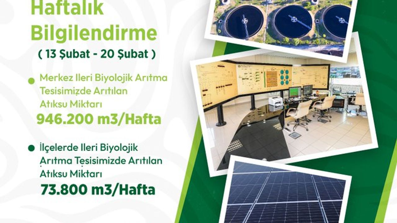 Açıklanan verilere göre, Merkez İleri Biyolojik Arıtma Tesisinde bir haftalık süreçte 946.200 metreküp atıksu arıtıldı. İlçelerde faaliyet gösteren ileri biyolojik arıtma tesislerinde ise aynı dönemde 73.800 metreküp atıksu arıtımı gerçekleştirildi.