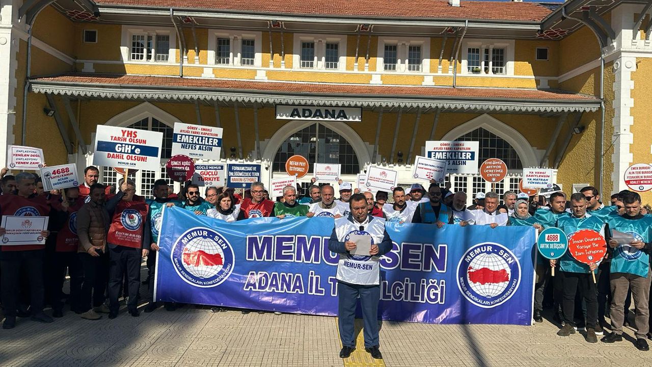 Memur-Sen Adana İl Temsilciliği, 2026 yılının memurlar için ilk maaş gününde tüm bağlı sendikaların katılımıyla İstasyon Meydanı'nda basın açıklaması gerçekleştirdi.