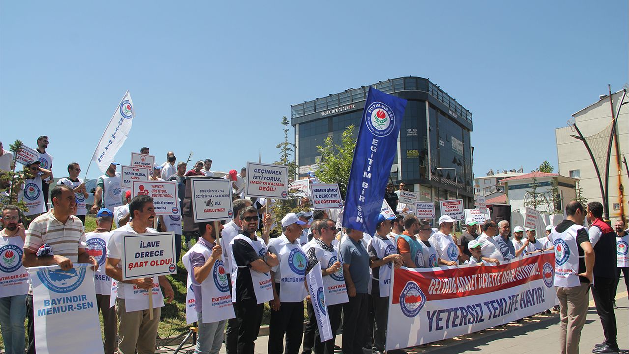 İşveren Heyeti’nin bu teklifini yok saydıklarını ve gerçekçi bulmadıklarını belirten Kava “8. Dönem Toplu Sözleşme görüşmelerinde Kamu İşvereni’nin sunduğu teklife karşı ortak tepkimizi göstermek, Genel Merkezimizin Eylem Planı doğrultusunda sorumluluğumuzu yerine getirmek ve sesimizi işverene duyurmak için bugün buradayız. Kamu işvereni dün açıkladığı teklifte 2026 için yüzde 10 artı yüzde 6, 2027 için yüzde 4 artı yüzde 4 zam önerisinde bulundu. Öncelikle; İşveren Heyeti’nin bu teklifini yok saydığımızı ve gerçekçi bulmadığımızı belirtiyoruz. Görüyoruz ki işveren, tutmayan enflasyon hedeflerini baz alarak kamu görevlisine bu teklifi layık görmüştür. İşverenin teklifinde refah payı ve taban aylığa zam yoktur, gelirde adaleti sağlayacak oran yoktur, emekli ve emekçiyi gözeten bakış yoktur. Kamu işvereninin bu teklifi, memurun yaşadığı zorlukların görmezden gelindiğini gösteriyor. Teklif, kamu görevlilerinde hayal kırıklığı oluşturmuştur. Kira artış oranının yüzde 41 olduğu bir zeminde, düşük belirlenmiş enflasyon hedefi kadar zam teklif edilmesi kabul edilebilir değildir. Bu teklif yetersiz ve geçersizdir. Yıllarca dirsek çürütmüş, gecesini gündüzüne katmış, daha kaliteli kamu hizmeti için kariyer yapmış memurlarımızın niteliğini ve emeğini değersizleştiren bir teklif olarak görüyoruz. Kamu çalışanları arasında oluşan huzursuzluğu, ücretlerde oluşan adaletsizliği bu teklif gidermez. Sayın Cumhurbaşkanımızın kamu çalışanları arasında ücretlerin dengelenmesi hassasiyetinin dikkate alınmadığı açıkça görülmektedir. Geçmiş kayıplarımız, yüksek enflasyon, market/pazar fiyatları, gelecek kaygılarımız işverenin teklifine yansımamıştır. Görüyoruz ki kamu işvereni 7'nci Dönem Toplu Sözleşmedeki hatasını tekrar ediyor. Altını çizerek ifade ediyoruz ki memurların ve emeklilerin kaybedecek 2 yılı daha yok. Biz, tutmayan hedeflerin, adaletsiz Hakem Kurulu’nun, maliyenin sıkılaşma politikalarının sonucunda kaybeden taraf olmak istemiyoruz.” dedi.