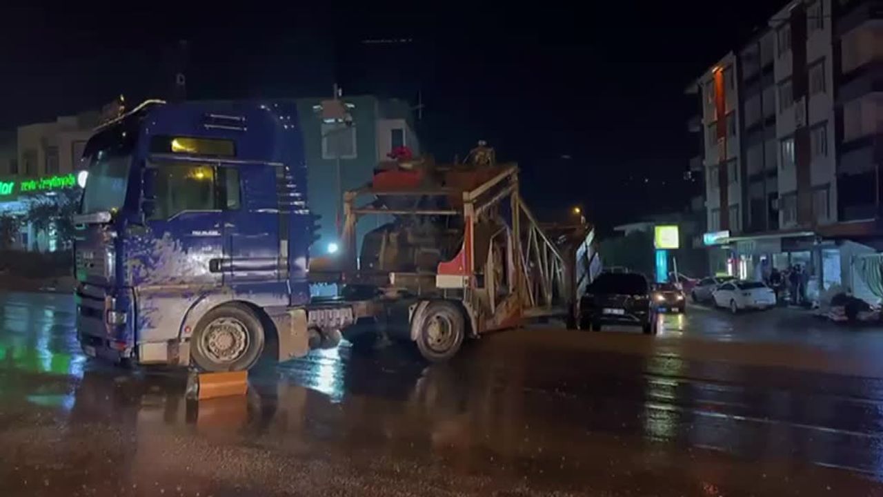Mersin’in Mut ilçesinde iş makinesi yüklü bir tırın dorsesinin rampada askıda kalması nedeniyle ulaşımda aksama yaşandı.
