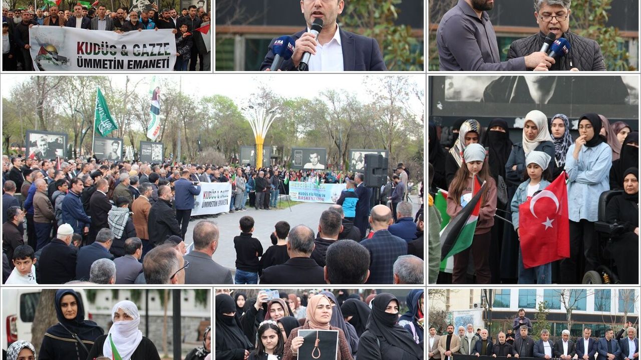Basın açıklamasını okuyan Cengiz Arı, "İnsanlığın ortak mirası, İslam dünyasının ilk kıblesi ve Müslümanların kutsal harem-i şerifi olan Mescid'i Aksa'nın, gasıp israil tarafından haksız gerekçelerle ibadete kapatılması ve Müslümanların en temel hakkı olan din ve vicdan hürriyetinin engellenmesi büyük bir endişe ve infialle karşılanmıştır. Mescid'i Aksa, sadece Filistin halkının değil, tüm İslam aleminin kalbidir. Bu kutsal mekanın kapılarına 35 gündür kilit vurulması; uluslararası hukukun, insan haklarının ve inanç özgürlüğünün açıkça ihlalidir. Mescid'i Aksa'nın ibadet edenlere kapatılması Kudüs tarihinde ilk kez yaşanan bir durumdur. Bu yapılan açık bir zulümdür." ifadelerini kullandı.