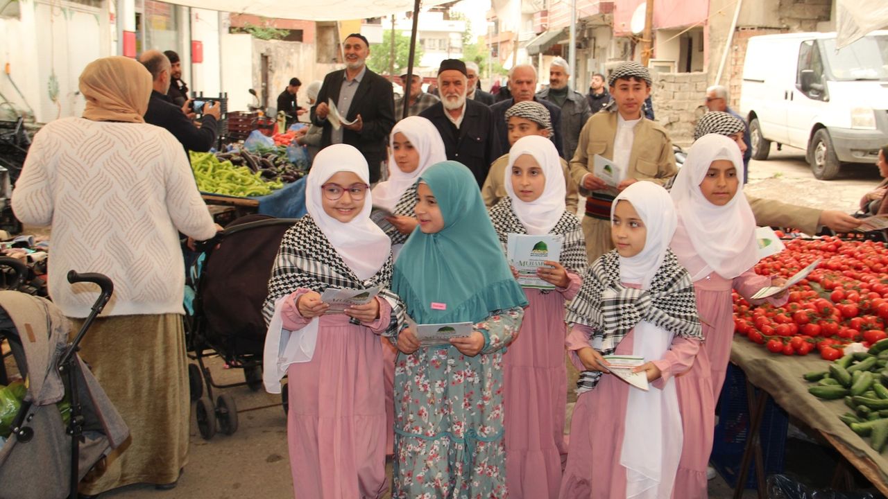 Direniş Önderi Hazreti Muhammed (sallallahu aleyhi vesellem) Temalı etkinlik öncesinde, yöresel kıyafetler giymiş küçük kız ve erkek çocukları ile gönüllüler, erbane eşliğinde ilahiler söyleyerek semt pazarı esnafına ve vatandaşlara el broşürleri dağıttılar.