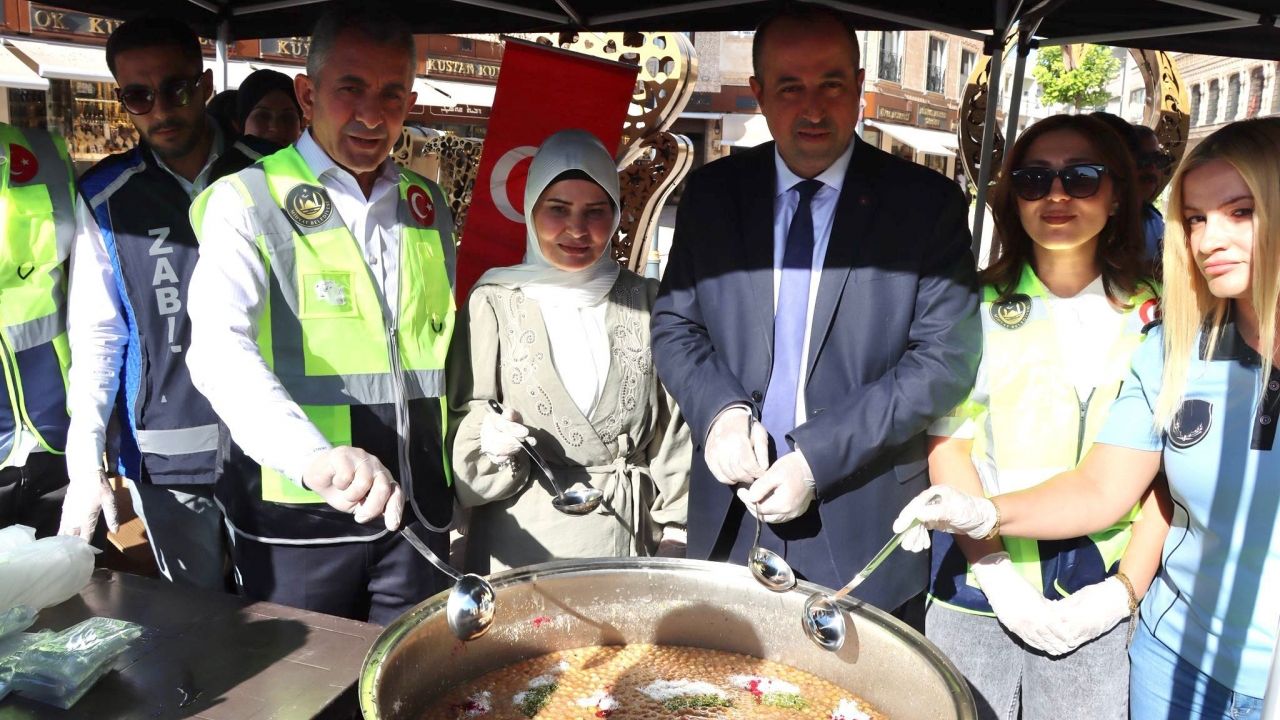 Midyat Belediyesi tarafından düzenlenen etkinlikte, Recep Tayyip Erdoğan Parkı, Kuyumcular Çarşısı ve Millet Bahçesi önünde kurulan stantlarda vatandaşlara aşure ikram edildi.
