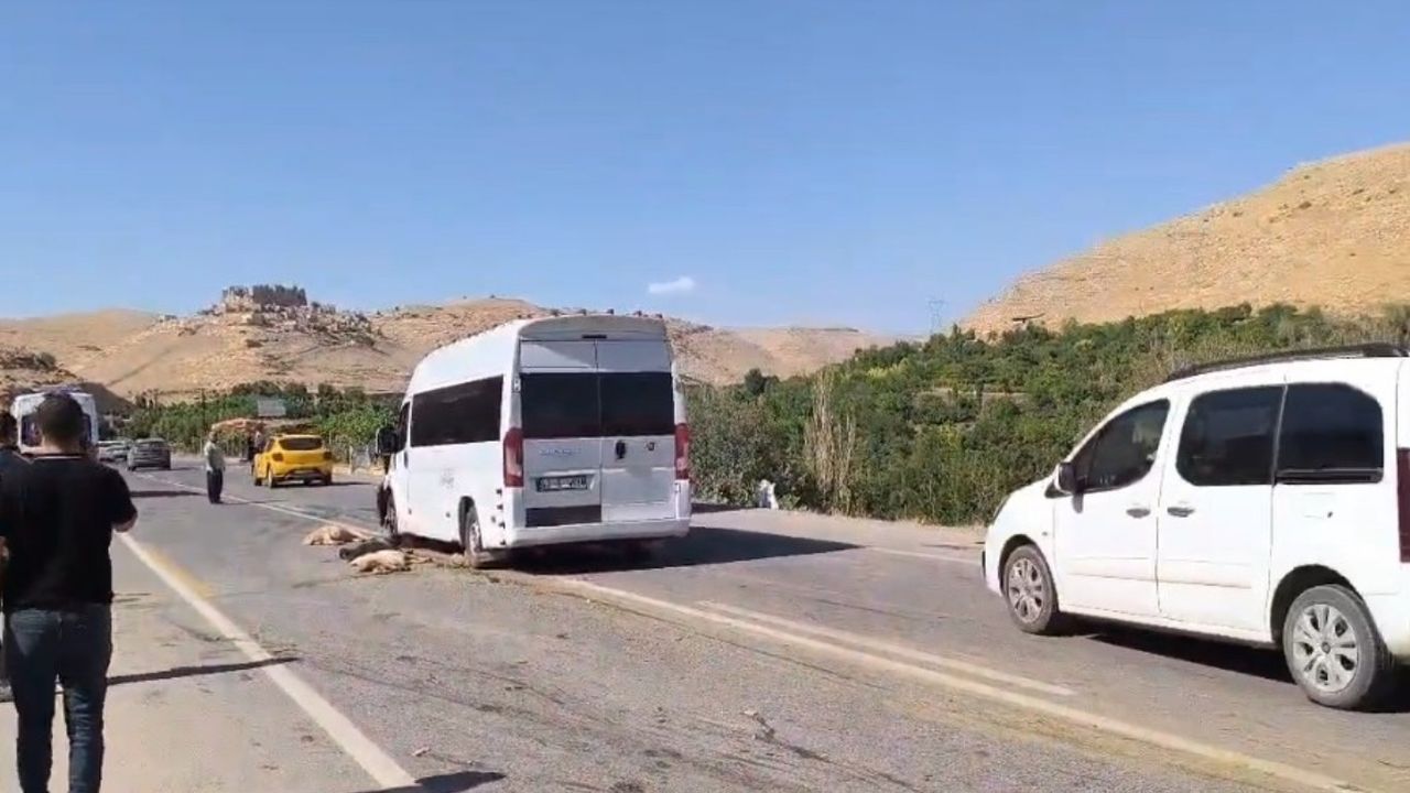 Sürücüsünün kimliği ve aracın plakası henüz belirlenemeyen minibüs, aniden yola çıkan hayvan sürüsüne çarptı.