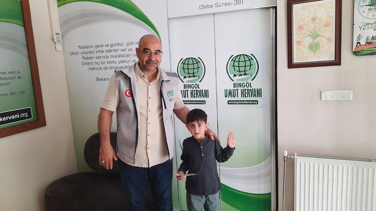 Umut Kervanı Derneği Bingöl Temsilciliği’nde yapılan bağış tesliminde konuşan Dernek Başkanı Refik Gönül, bu anlamlı davranıştan dolayı minik Abdusselam’a ve Amine’ye teşekkür etti.