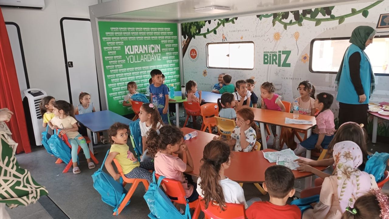 Çocukların keyifli vakit geçirdiğini kaydeden Sevil, "Özellikle deprem bölgelerinde camilerin yıkılmasıyla eksik kalan eğitimi mobil sistemle tamamlamak amacıyla başlatıldı. Çocuklarla dolu dolu vakit geçiriyoruz. Sonrasında şehir merkezinde belirlenen diğer noktalarda olacağız." dedi.