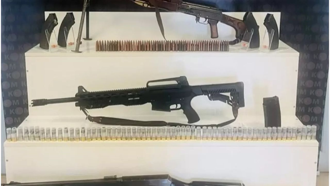 Adreslerde yapılan aramalarda bir adet silah, 110 fişek, 4 şarjör, 3 av tüfeği ile 88 av tüfeği kartuşu ele geçirildi.