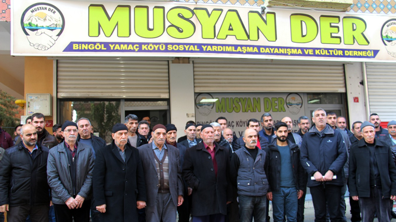 Merkez Bağlar ilçesi Selahaddin Eyyubi Mahallesinde bulunan MUSYAN-DER önünde yapılan basın açıklamasını Dernek Başkanı Alaaddin Elaltunkara okudu.