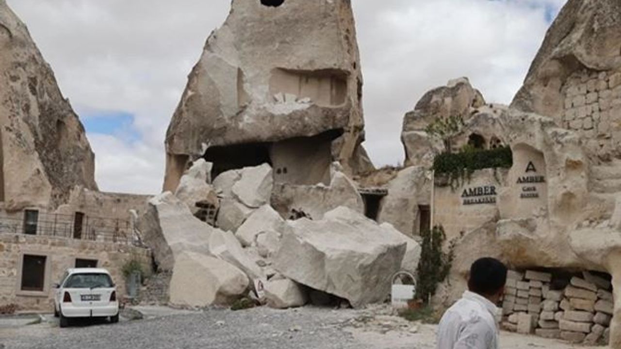 Peribacasından kopan kaya parçaları çevreye savrulurken olayda can veya mal kaybı yaşanmadı.