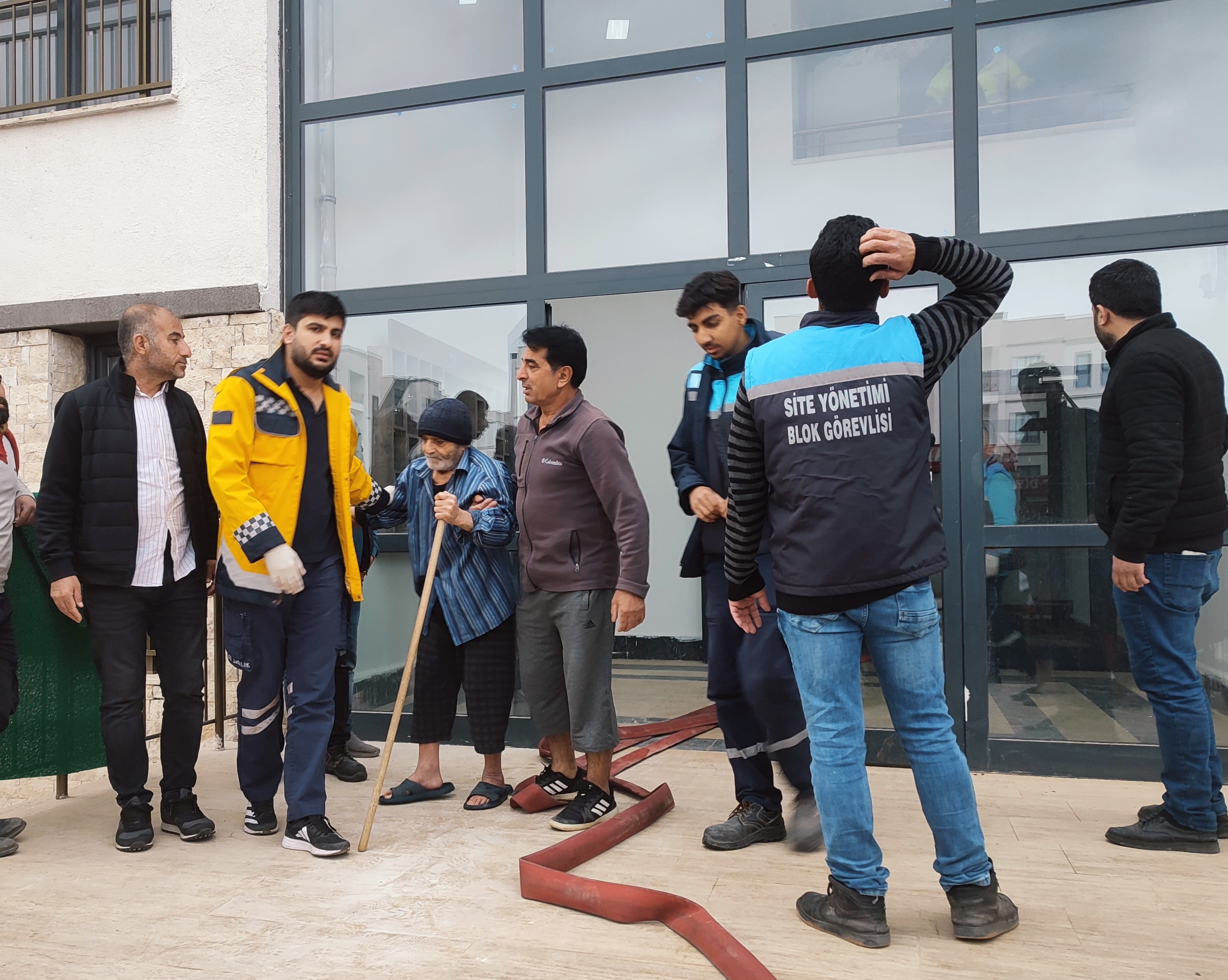 İtfaiye ekipleri yangına müdahale ederken, itfaiye merdiveniyle binada mahsur kalan vatandaşlar tahliye edildi.