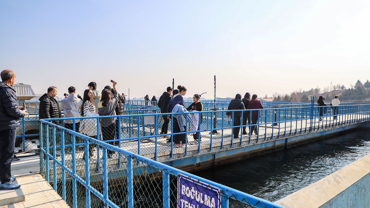 Öğrenciler, ham suyun debi ölçümünden başlayarak havalandırma, ön klorlama, durultucular ve filtreleme işlemlerine kadar uzanan arıtma sürecini yerinde gözlemleme fırsatı buldu.