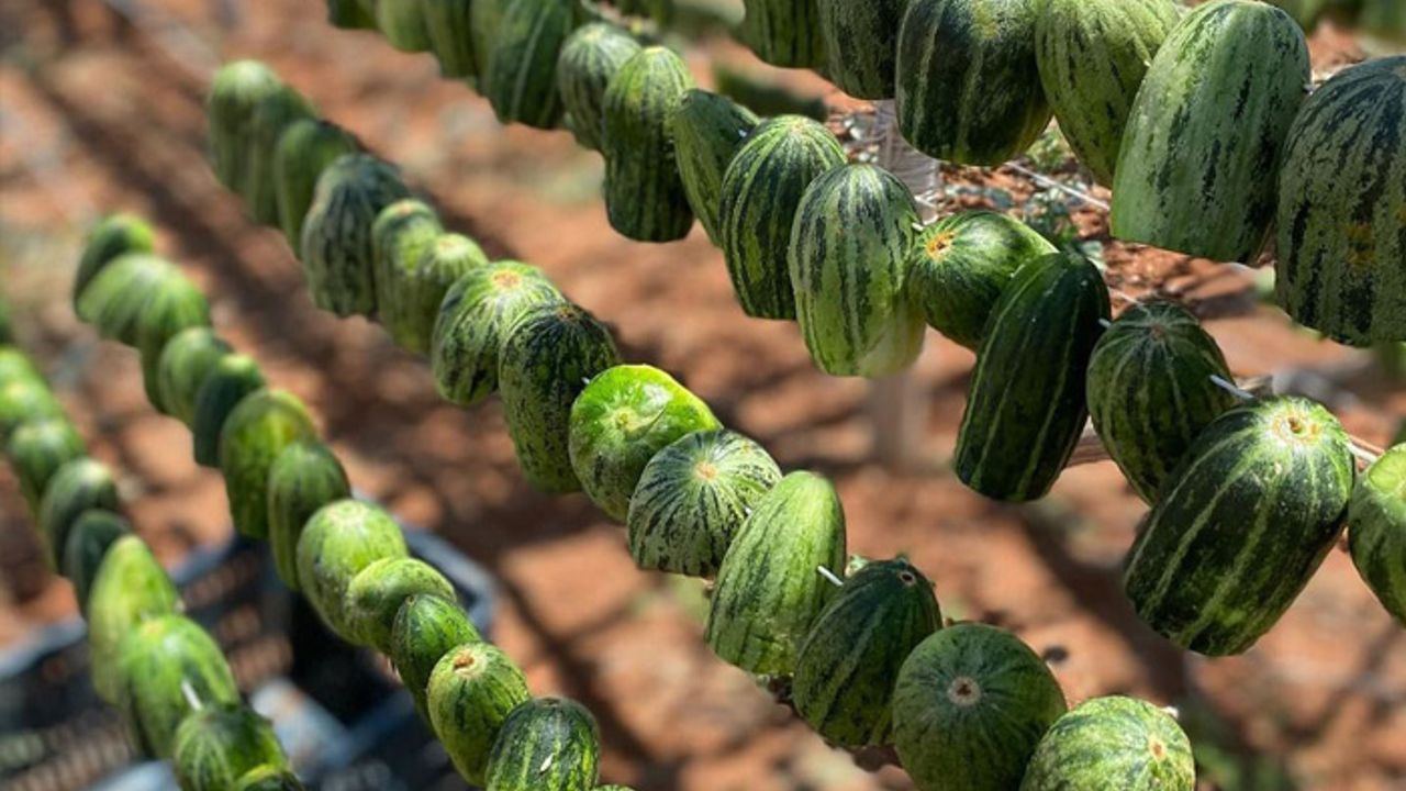 Diyarbakır’ın tarihi Sur ilçesinde yaz mevsiminin habercisi olan acur, seyyar tezgâhlardaki yerini aldı. Susuz tarım yöntemiyle yetiştirilen bu yerel ürün hem lezzeti hem de serinletici özelliğiyle sıcak günlerde halkın tercih ettiği sebzeler arasında yer alıyor.
