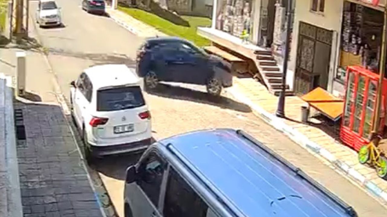 Yaralı sürücüye ilk müdahale kaza yerinde yapıldıktan sonra ambulansla hastaneye kaldırılırken, kaza anı güvenlik kameraları tarafından saniye saniye kaydedildi.