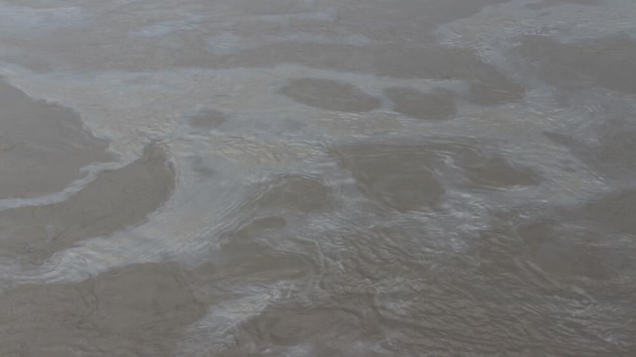 Nehir yüzeyi petrolle kaplandı
