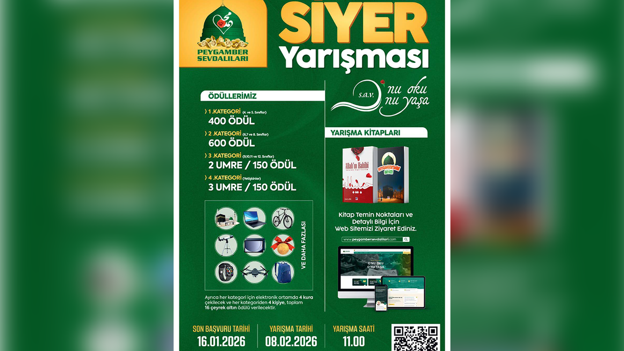 Yarışmanın ödülleri hakkında da bilgi veren Kaya, "Sınav ile ilgili her yıl binlerce hediye dağıtıyoruz. Zaten mottomuz 'kaybedeni olmayan bir sınav.' Çünkü Aleyhisselatu Vesselam'ın hayatı okunacak, öğrenilecek ve yaşantıya dönüşecek. Bunu en büyük kazanım olarak görüyoruz. Tabii bunun yanında küçük ya sayılabilecek; umre ödülleri, laptoplar, dronlar, teleskoplar gibi çok çeşitli hediyelerimiz olacak inşallah. Yani binlerce hediye vermiş olacağız ama bu sınavı yapmamızdaki en büyük kazanç Aleyhissalatu Vesselam'ın özellikle bu çağda yani 21'inci yüzyılda, 2025-2026 gibi bir yılda belki yüz binlerce kişi Peygamber Efendimizin hayatını okuyacak. Ondan belki örnekler kendi hayatına aktaracak. Bunu en büyük kazanç ve kazanım olarak görüyoruz." diye belirtti.