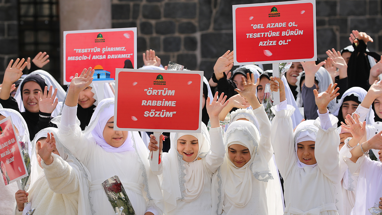 "Allah'ın dinin sadece ezanlarımızla değil tesettürümüzle, edebimizle, hayamızla meydanlara taşıyacağız"