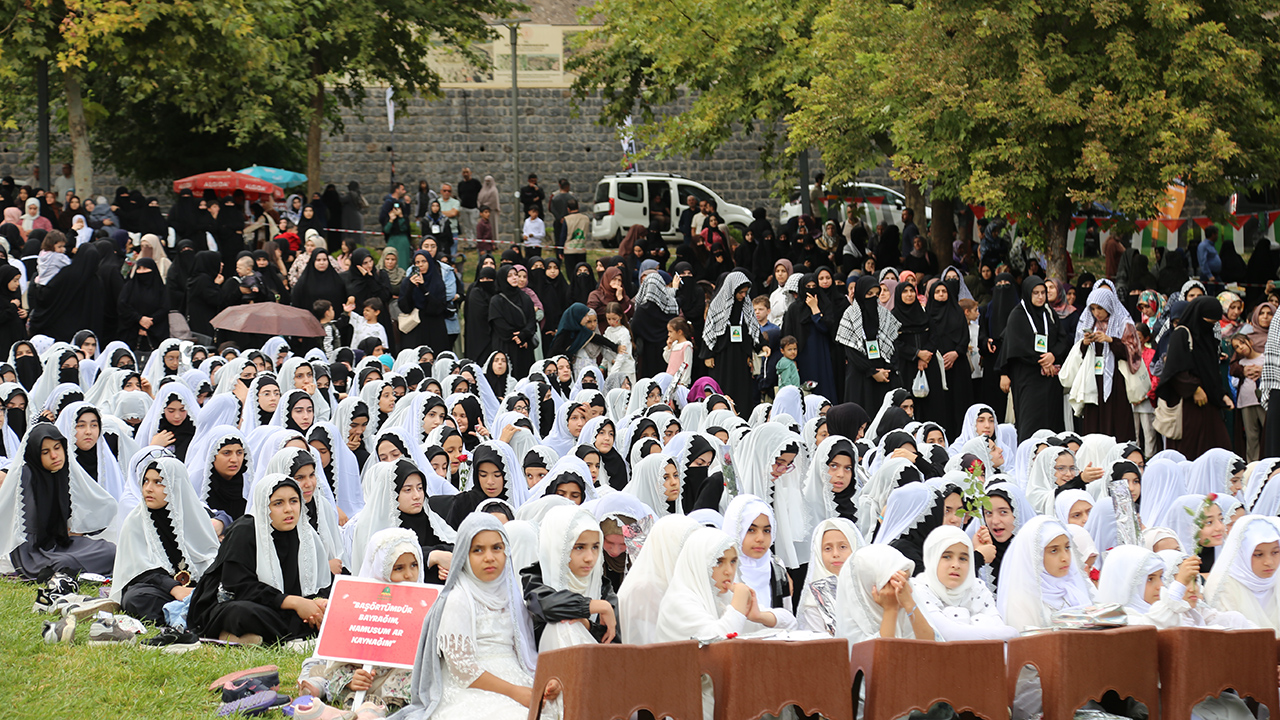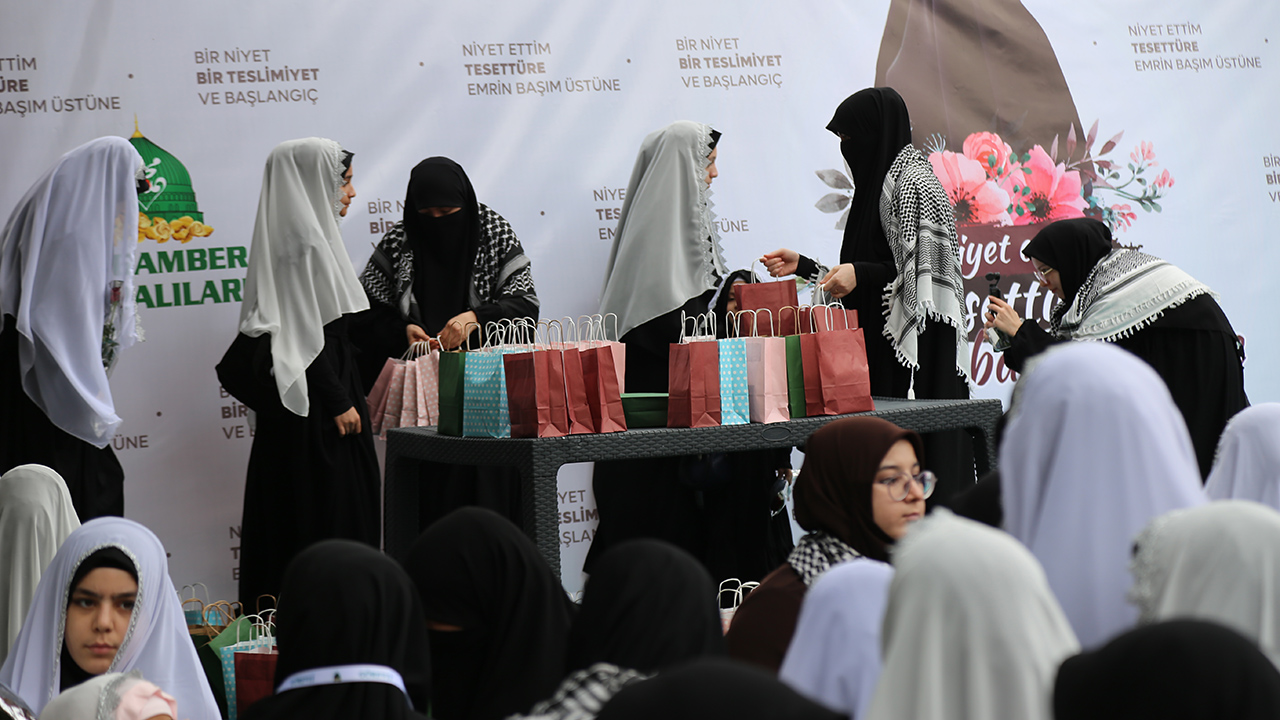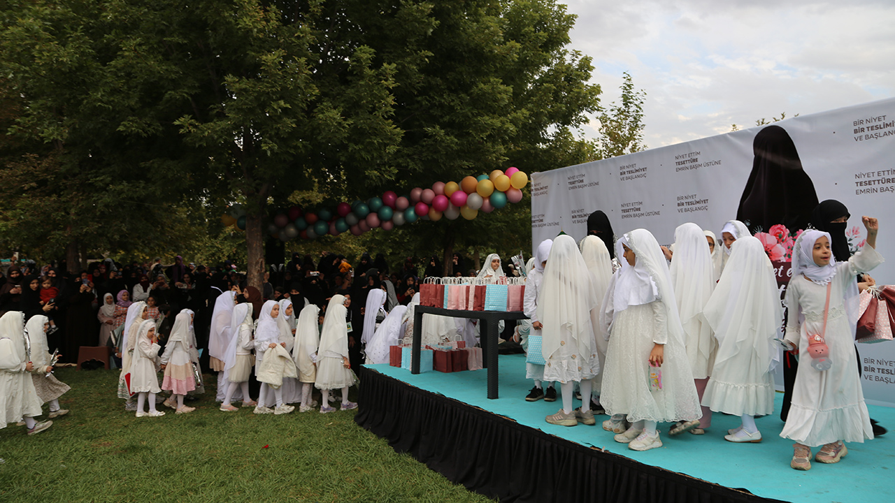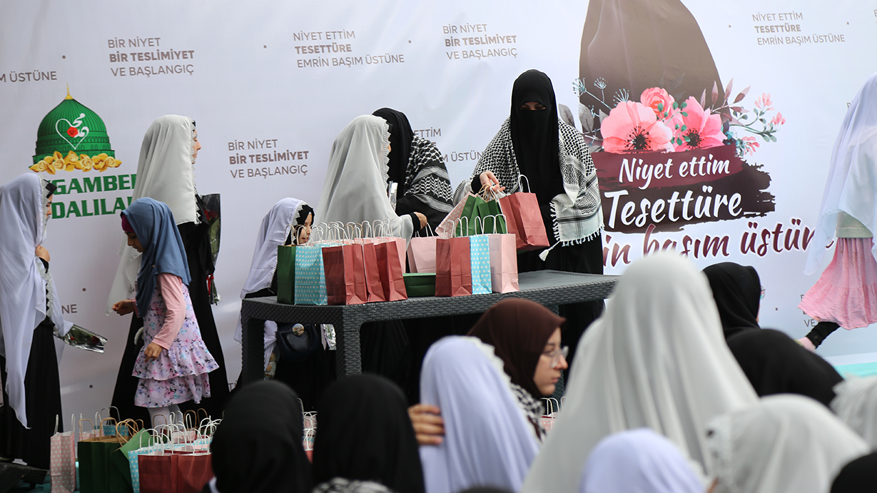 Tesettüre bürünen kız çocukları ve gençlerin ailelerinin de yoğun katılım ve teveccüh gösterdiği program, Kur'an-ı Kerim tilavetiyle başladı, ardından Şeyma Kaplanın selamlama konuşmasıyla devam etti.