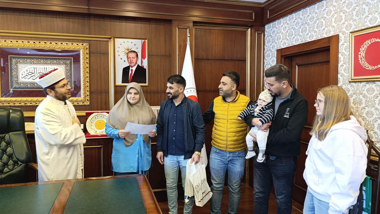 Bingöllü eşi ve çocuklarıyla birlikte İl Müftülüğünü ziyaret eden Honorata Maria, İl Müftüsü Orhan İmamoğlu’nun rehberliğinde Kelime-i Şehadet getirerek Müslümanlığı kabul etti.