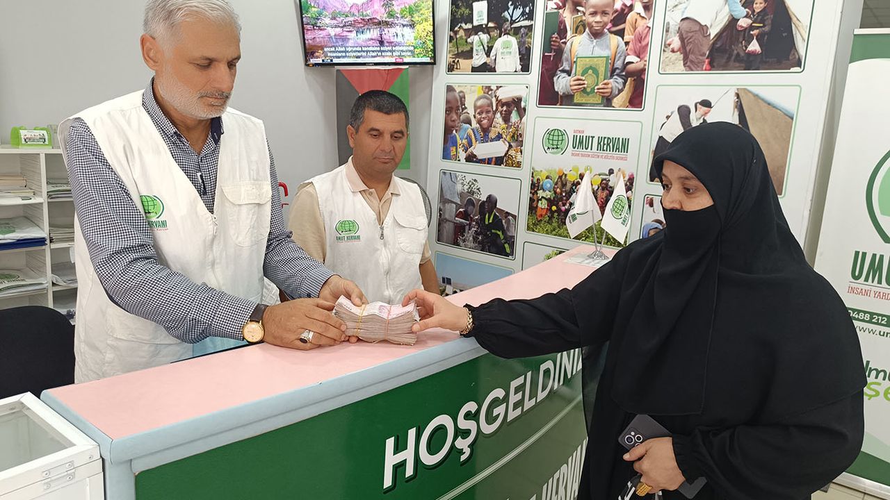 Turan, "2 yılı aşkın bir süredir Gazze'de yaşatılan vahşet sürmektedir. Oradaki mazlum halka destek olmak amacıyla zulmün başından bu yana hayırsever bizlere onlarca araba, motosiklet, bisiklet, altın ve paralar bağışlanmıştır. Bugün de bir bacımız, umre için biriktirdiği paralarını Gazze'ye ulaştırmak üzere bize bağışladı. Bacımız, rüyasında umreye giderken kendini Gazze'de bulmuş. Kendisinden Allah razı olsun. Tüm vatandaşlarımızı da bu tür hayırları yapmaya davet ediyoruz." diye konuştu.