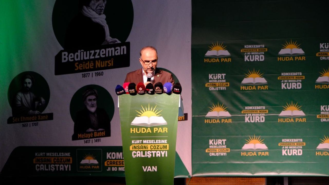 HÜDA PAR Genel Başkan Yardımcısı İshak Sağlam, partisinin İnsan Hakları ve Hukuk İşleri Başkanlığı tarafından Van’daki bir otelin konferans salonunda gerçekleştirilen “Kürt Meselesine İnsani Çözüm Çalıştayı”nda açılış konuşması gerçekleştirdi.