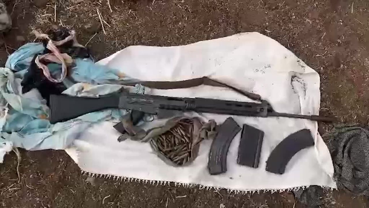 Jandarma ekiplerince yapılan paylaşımda, silah ve mühimmatların tarlalar ve taşlık alanlar içerisinde bulunduğu görüntüler de yer aldı.