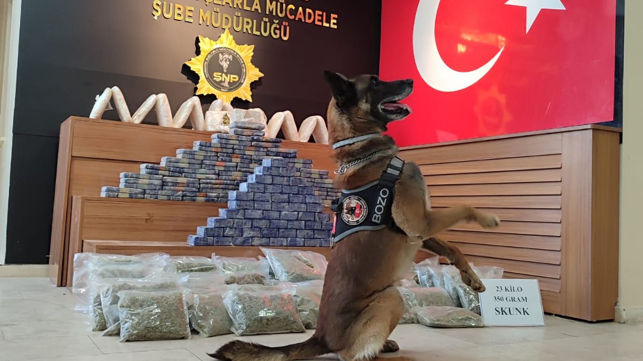 Durdurulan bir araçta yapılan aramada, 68 kilo 400 gram eroin, 23 kilo 350 gram skunk ve 9 kilo 200 gram toz esrar maddesi bulundu. Operasyon sonucunda 1 şüpheli gözaltına alındı.