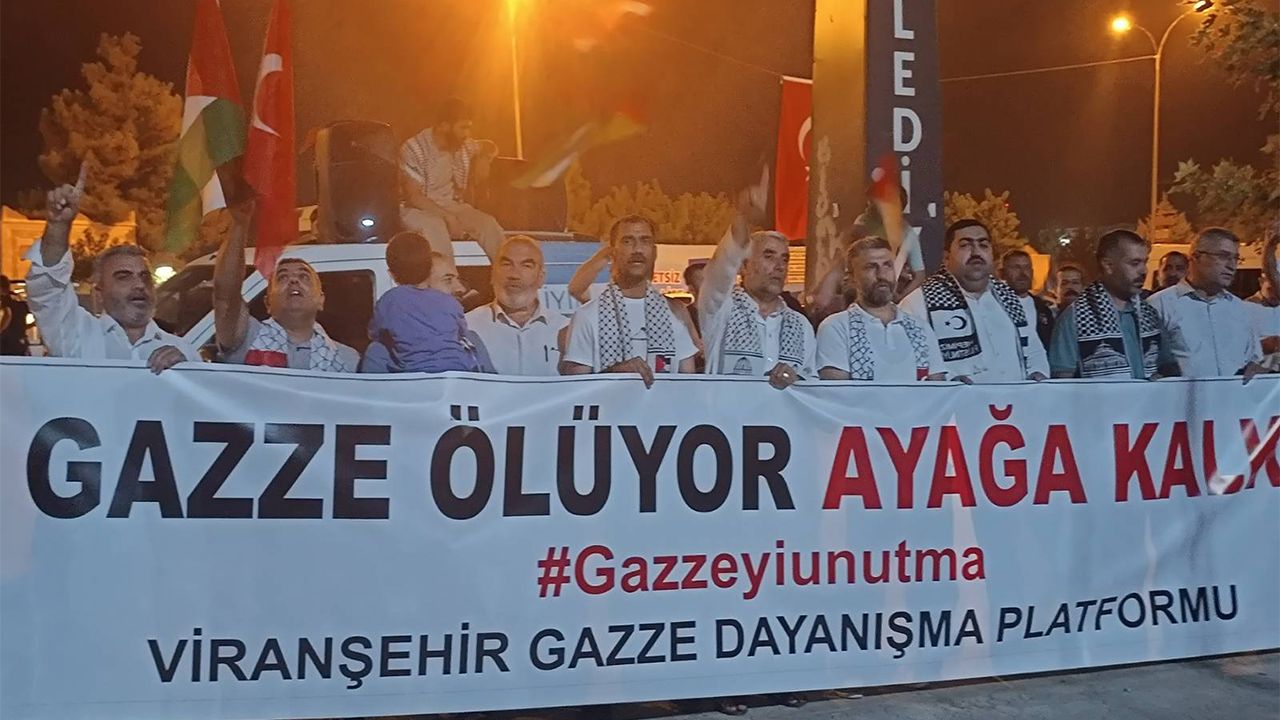 Tren yolu üzerinde kurulan platformda STK temsilcileri adına konuşan İlyas Koyuncu “Gazze’de yaşananlar bir insanlık suçudur. Masum siviller, özellikle çocuklar ve kadınlar hedef alınmakta, dünya ise bu soykırıma sessiz kalmaktadır. Biz Viranşehir halkı olarak bu sessizliğe ortak olmayacağız. Gazze’nin sesi olmak için buradayız. Tüm vicdan sahibi insanları bu zulme karşı durmaya çağırıyoruz” dedi.