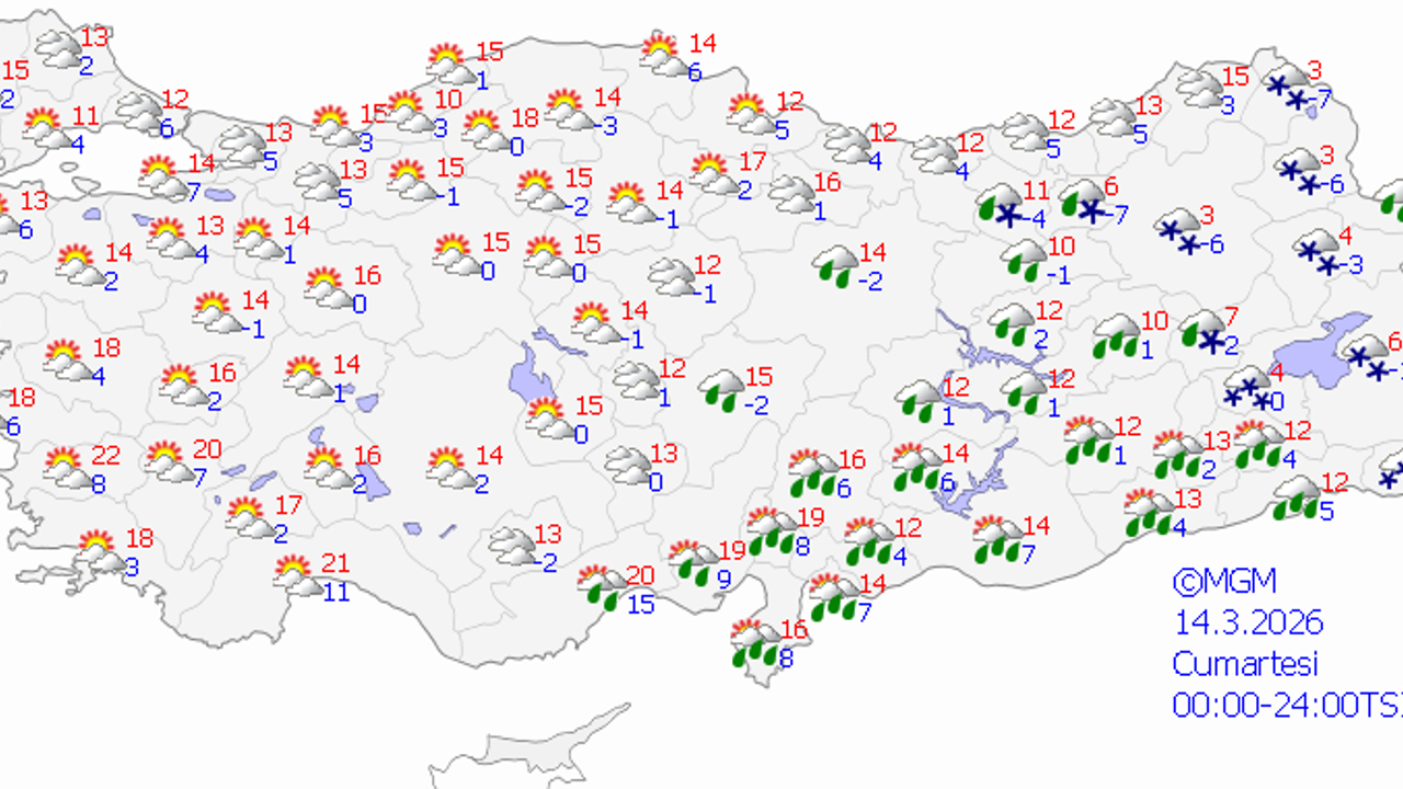 Kentte bugün en yüksek sıcaklığın 14°C, en düşük sıcaklığın ise 8°C olması tahmin ediliyor. Yağış ihtimalinin yüzde 100 civarında olduğu belirtilirken, yaklaşık 19,4 milimetre yağış bekleniyor.
