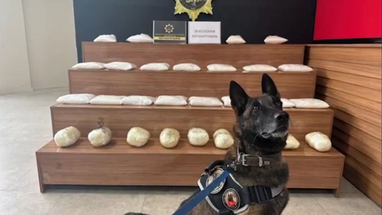 Araçta yapılan aramada 28 kilogram metamfetamin ele geçirildi.