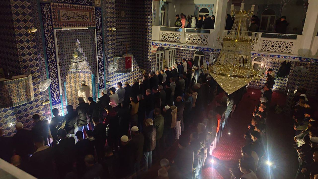 Kesinti nedeniyle Eset Efendi Camii ve bağlı bulunduğu Bağlarbaşı Mahallesi'nde karanlıkta kalan cemaat, namazı imamın sesiyle takip etti.