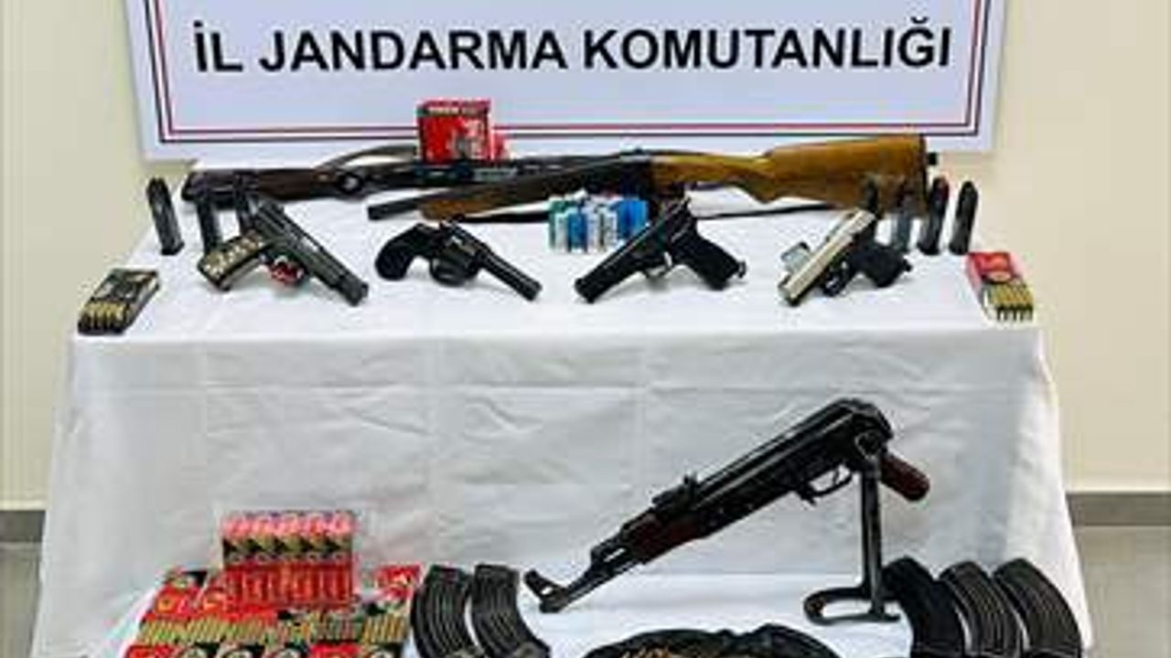 Belirlenen adreslerde yapılan aramalarda 3 tüfek, 4 tabanca, 18 şarjör ile 1324 fişek ele geçirildi.