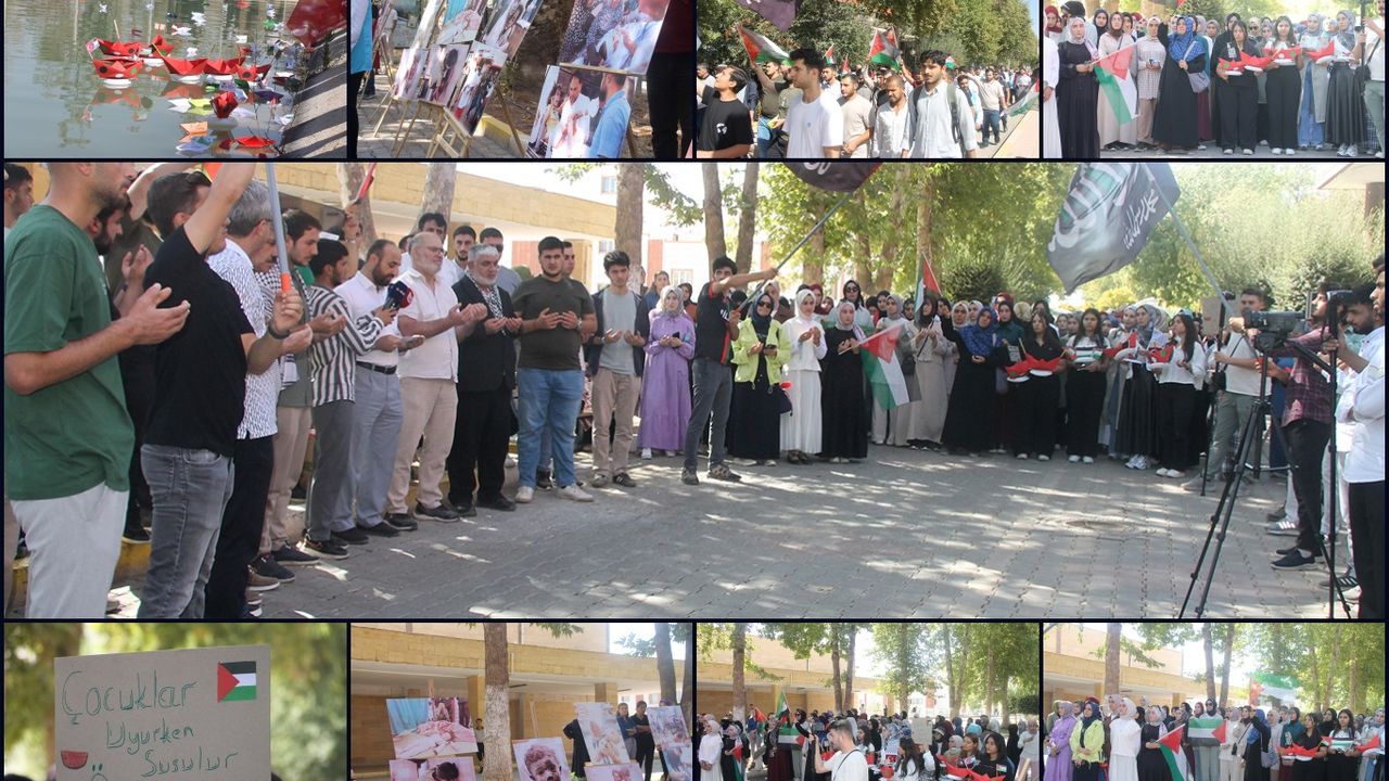 Harran Üniversitesi Erdemli Gençlik Kulübü tarafından organize edilen etkinlik, 7 Ekim 2025 Salı günü Osmanbey Kampüsü’nde gerçekleştirildi. “Sumud’dan Gazze’ye Direniş ve Dua Köprüsü” temasıyla düzenlenen program, Merkezi Yemekhane önünde yapılan basın açıklaması ve resim sergisiyle başladı.