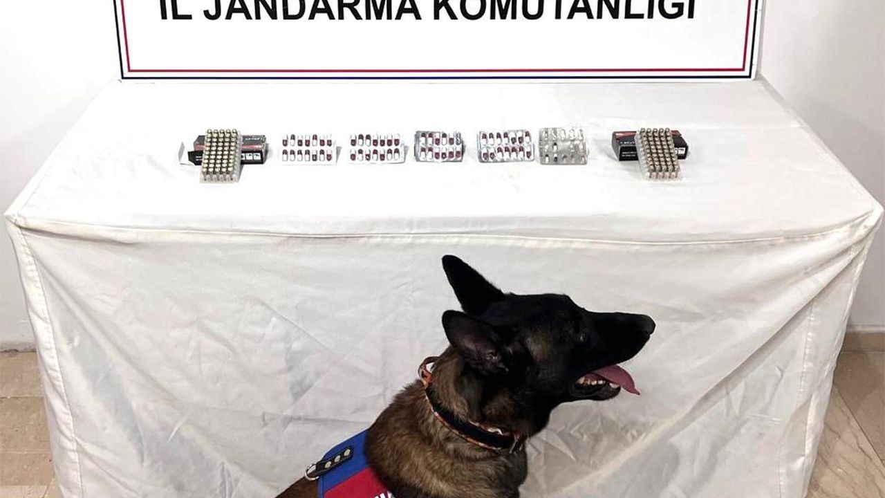 Şüpheli şahsın ev ve eklentilerinde yapılan aramada 60 adet sentetik ecza hap ve 100 adet fişek bulundu.