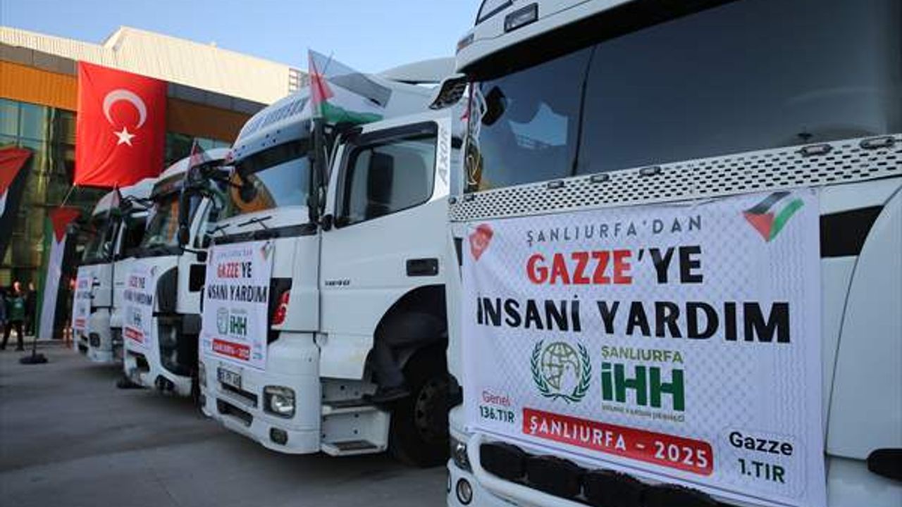 Şanlıurfa’da hayırseverlerin desteğiyle toplanan gıda malzemelerini taşıyan 4 tır, Gazze’deki ihtiyaç sahiplerine ulaştırılmak üzere yola çıktı.