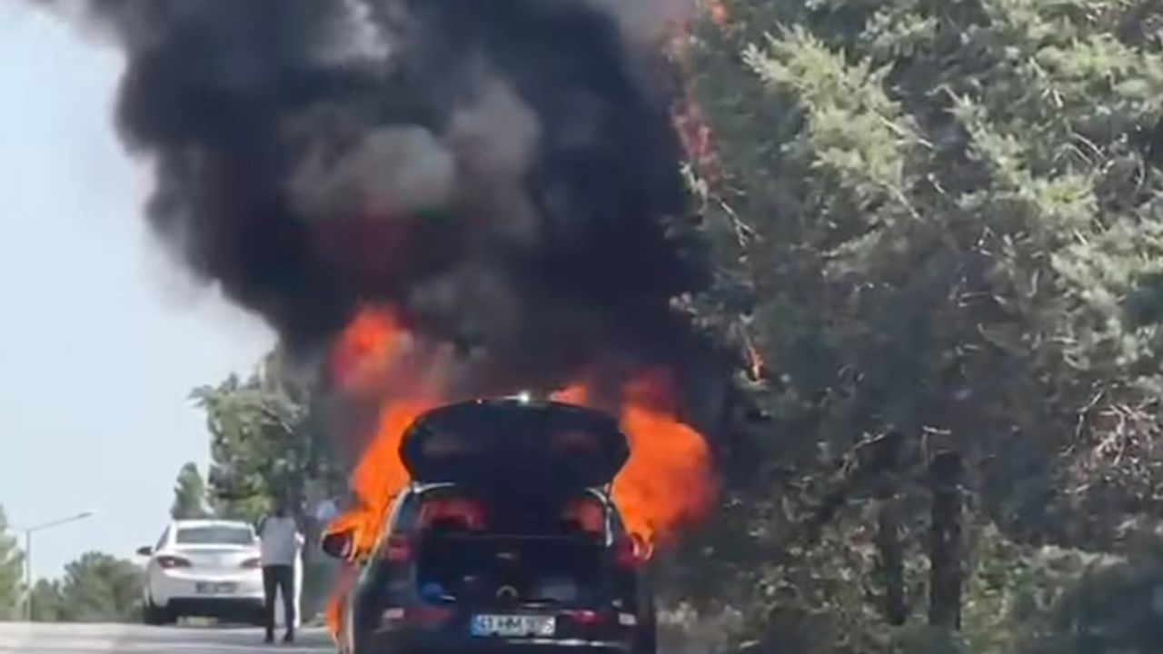Edinilen bilgilere göre, seyir halindeki bir otomobilin motor kısmında henüz bilinmeyen bir nedenle yangın çıktı.