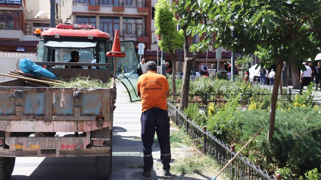 Cadde boyunca süs bitkileri ekilirken, yabani otlar temizlendi.